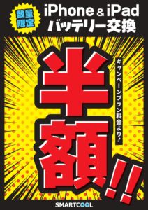 本日はApple製品のバッテリー交換修理半額キャンペーンについてご紹介します。